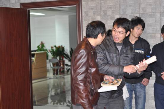 与此同时,包饺子比赛也在厨房如火如荼地进行,同样的审计部、评估部、造价部各选出三名选手组成一组代表本部门进行比赛,和面、剁菜、拌馅、擀皮、包饺子、煮饺子,大家忙得不亦乐乎,有说有笑,气氛紧张而又祥和,惹得观众们也忍不住陆续加入到包饺子的队伍当中,大家互相切磋厨艺,交流感情,增进友谊,竞技又不失和谐,充分体现了厨艺的竞争与合作精神,更进一步提高了公司厨艺爱好者的技术。下午五点整,审计组的代表们率先端出了香喷喷的饺子,评委评分过程中一小女孩的连声好吃更是增强了她们的自信心和自豪感。随后评估组、造价组热气腾腾的饺子也相继出炉。包饺子比赛最后宣布评分结果:审计组第一,评估组第二,造价组第三。