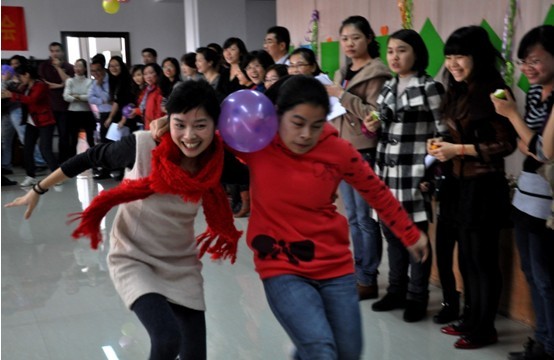 活动很快在主持人的开场白中拉开帷幕,年会主要分为三部分,游戏竞赛、包饺子比赛和趣味竞赛。游戏竞赛部分主要是部门间的比赛,有像“齐心协力”和“再接再厉”这样考验队友间协作能力的传递气球类比赛,也有像“心有灵犀”这样你比划我猜词的,考验队友心灵默契的比赛,当然也有像“踩气球”这样的部门大混战,游戏由各个部门派出两人队伍参加,参赛队员们既要防守好自己脚下的气球,又要找机会踩破对方脚下的气球。由于已经是最后一个项目了,大家都紧张地把赛场围成一圈,场上的队员们在你进我退,攻守兼备里紧抓胜利的契机;场下的同事们在摇旗呐喊,为自己的部门加油助威。最后,经过一系列激烈的角逐,造价部以积分最高赢得了本次的年会游戏竞赛部分的冠军。