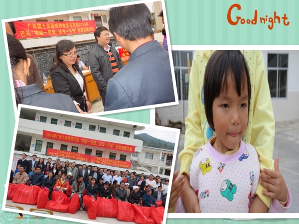 11月29,冬日里的阳光格外暖和,我公司积极响应协会的活动倡议,发杨公司的优良企业文化,弘杨“能帮就帮”的互助美德,跟随着区国土资源厅和广西土地估价师协会的脚步,来到巴马县龙威村和岩延村参加广西土地估价协会举办的“捐献一份爱,架续一片情”慈善捐赠活动。此次活动巴马县挂职县长副县长,广西国土资源厅机关党委副书记傅义华,广西土地估价协会会长、广西国土资源规划院院长邓强等均到场参加活动,可见是非常重视。我和李春燕总审也荣幸带表公司参加了此项活动。