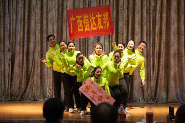 第四篇章:收获与分享。过去的一年,是付出的一年,是努力的一年,是奋斗的一年:广西信达友邦工程造价咨询公司荣获住建部颁发的工程造价咨询企业甲级资质证书;广西信达友邦会计事务所荣获“广西注册会计师行业2015年执业质量竞赛”二等奖……等等奖项的颁发,是社会、客户以及我们对过去一年工作的认可,爱拼,才会赢。在抽奖环节进行的时候,丰盛的晚餐也开始上餐桌了,就着抽奖的欢呼声,我们大快朵颐着……。 信达友邦感恩有你,反之,亦然;踏着年会的欢声笑语,听着年会的点点滴滴,丰收的2015依然远去;将那些收获的爱与欢喜装入怀里,踏上明天,信达友邦人相信2016更辉煌。