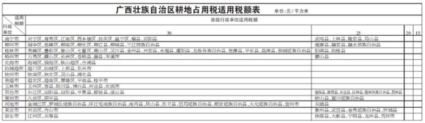 附:广西壮族自治区耕地占用税适用税额表 单位:元/平方米