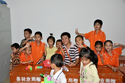 带着暖暖的爱心和对特殊教育学校的好奇,7个小时的路程很快就过去了。我们顺利地到达了位于隆林县后龙山西南面的特殊教育学校,这是学校在重建期租用民政局的养老院做的教室和宿舍。看到我们的到来孩子们都很高兴,用不是很清楚的童声向我们迎上来叫着 “叔叔好、阿姨好”,聋哑的孩子兴奋地冲着我们做欢迎的手语。在学校老师的带领下,我们首先来到了孩子们的宿舍,虽然每一床被子都不一样,但是都叠得整整齐齐的。走廊里一张张孩子们亲手剪的剪纸作品,教室里一样样孩子们的手工艺术品和书法绘画作品,太精巧了,让我们不禁为之惊叹。在交流中,我们一直被深深地感动着,我们为残疾孩子们在各个方面取得的优秀成绩而感慨,我们被孩子们在生活和学习上自强不息的精神所折服。这些孩子,他们或永远缺失了彩色的世界,或从此远离了热闹与喧嚣,或者,早已被剥夺了普通人一样的正常生活能力。但是,先天的残疾并没有摧毁他们坚强的意志,满路的荆棘也没有挡住他们前行的步伐,他们一样用勤奋与汗水,一步步登上高等学府神圣的殿堂,他们一样用顽强与拼搏为社会的进步贡献了一份宝贵的力量。同时我很佩服特教的老师们,孩子们微小的进步背后该是多少的艰难付出啊!是他们辛勤的汗水,让这些孩子们那么的快活,那么的活泼,那么的幸福;是他们无私的爱,伴随着孩子的成长……